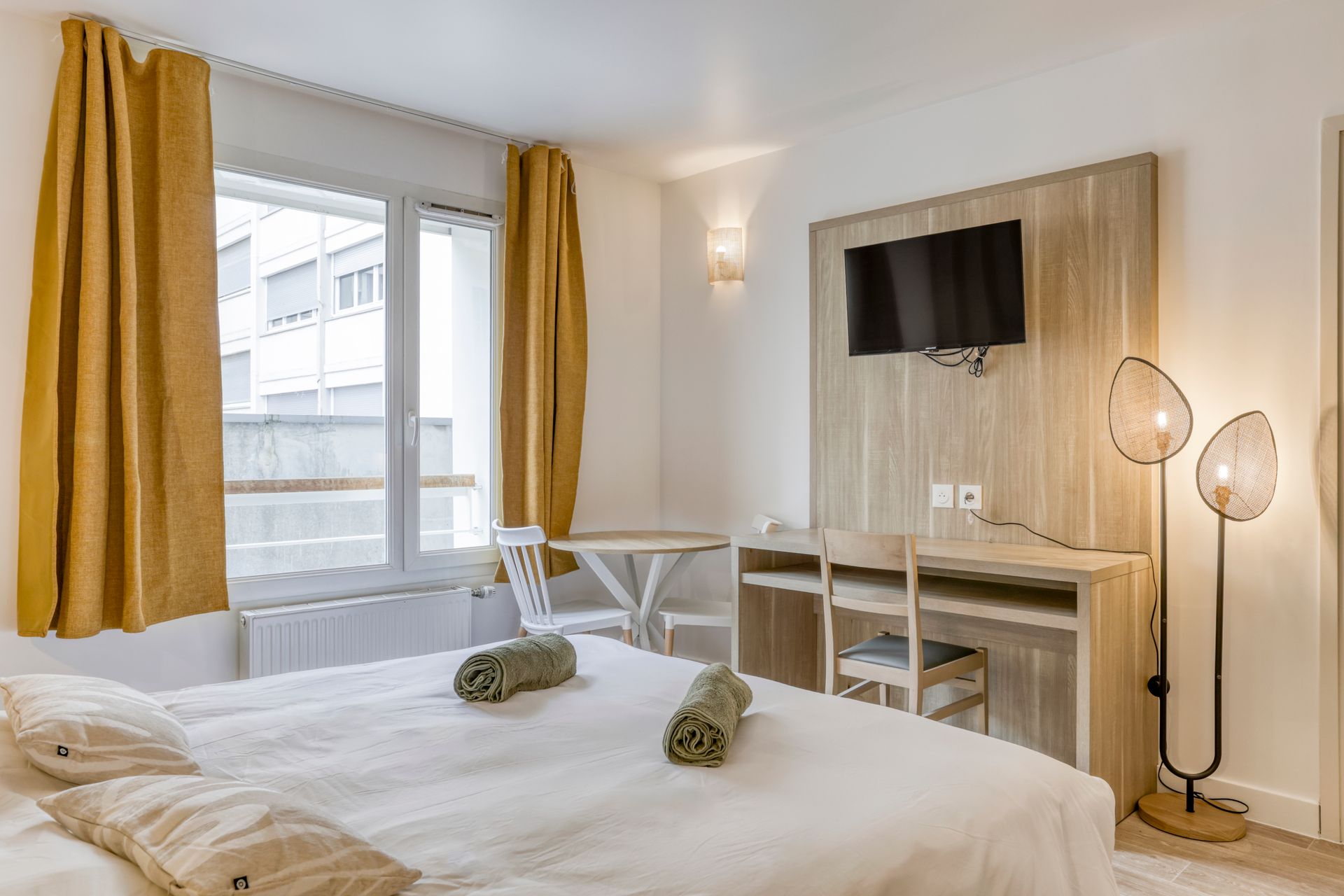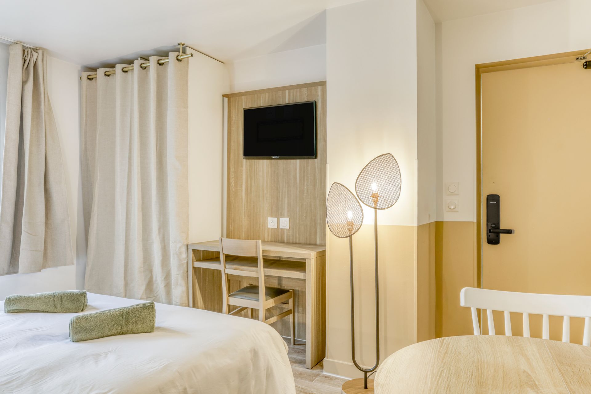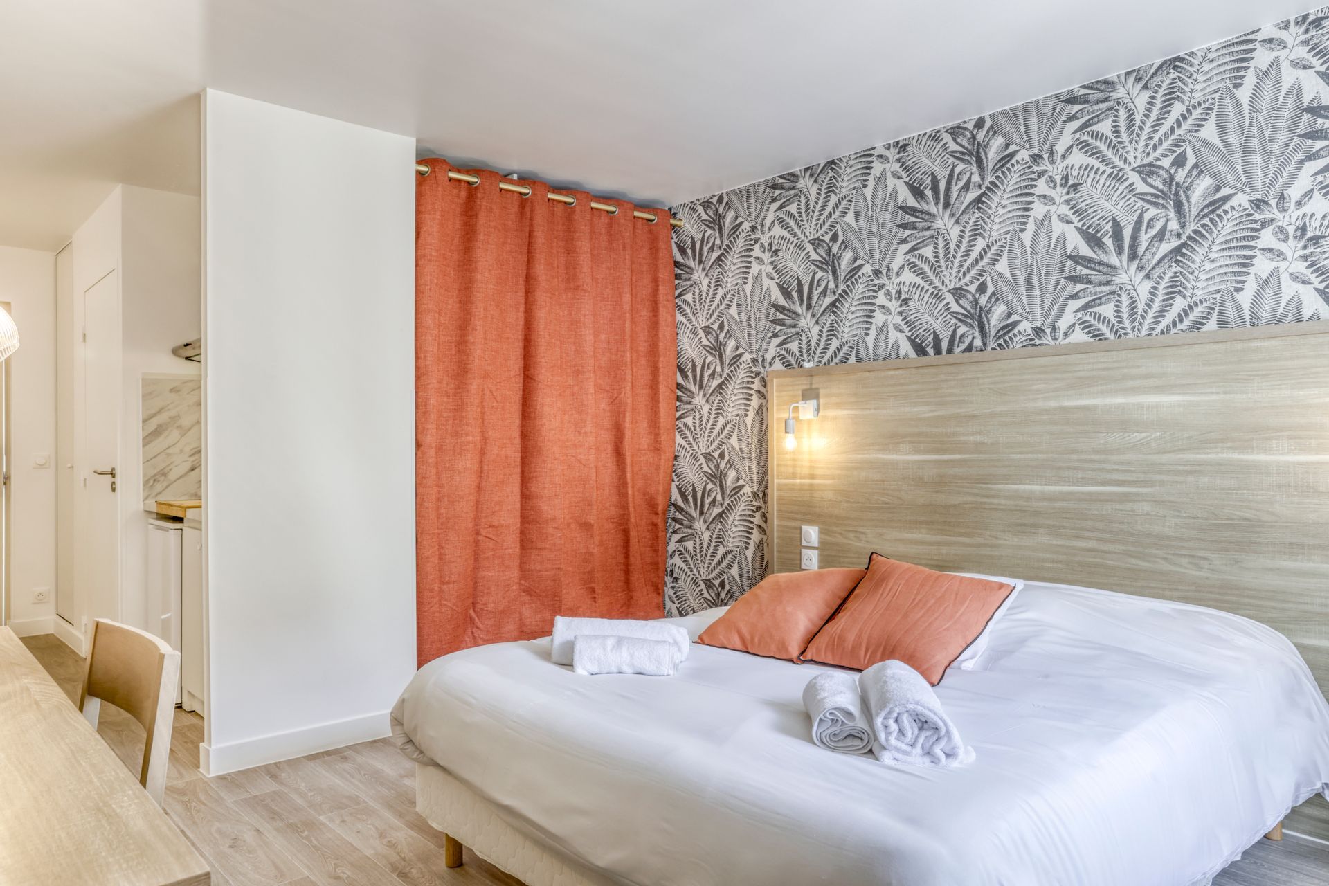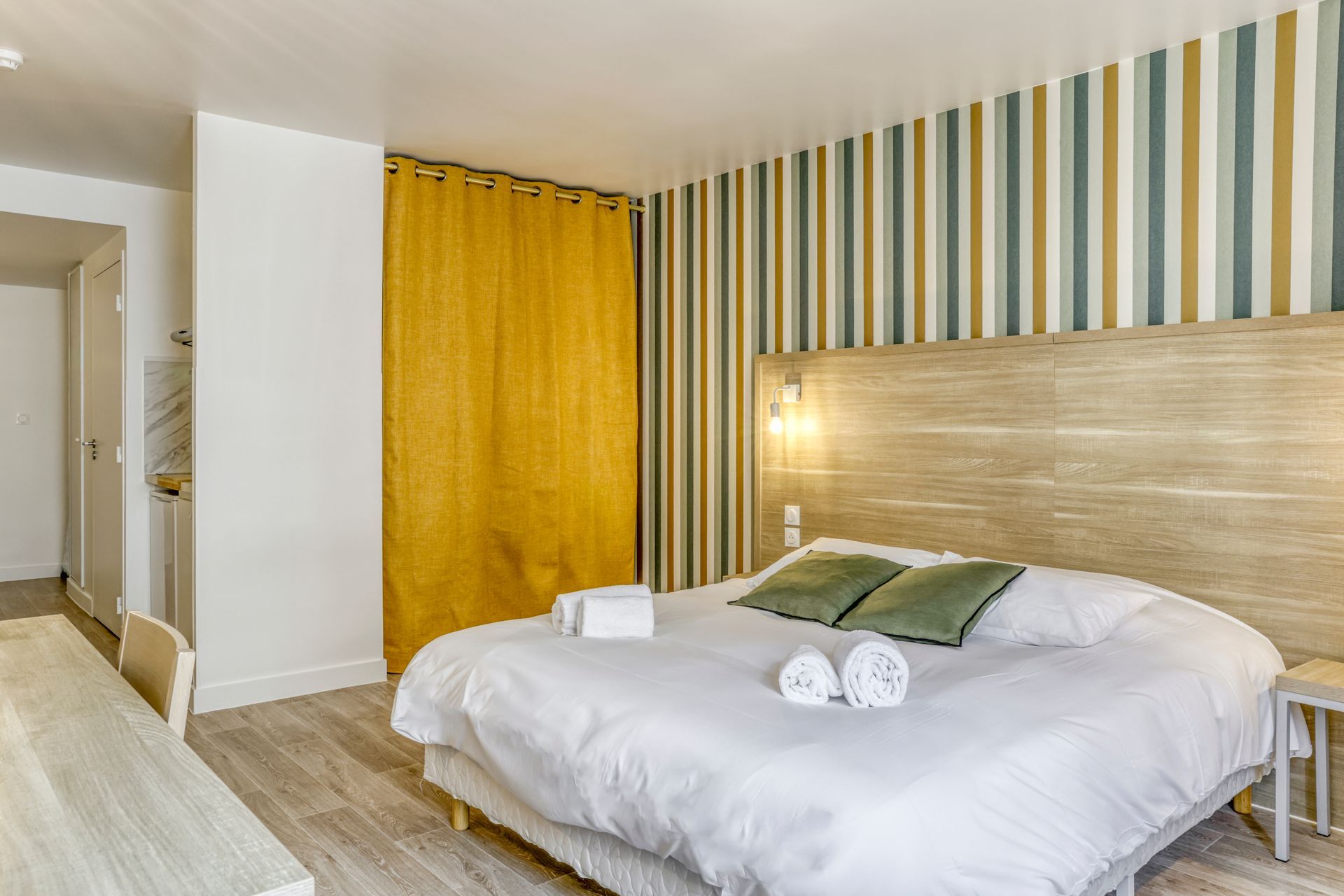 Nos 20 studios meublés sont répartis en 5 thèmes uniques, allant de 25 à 40 m², tous équipés pour vos séjours courts ou longs.