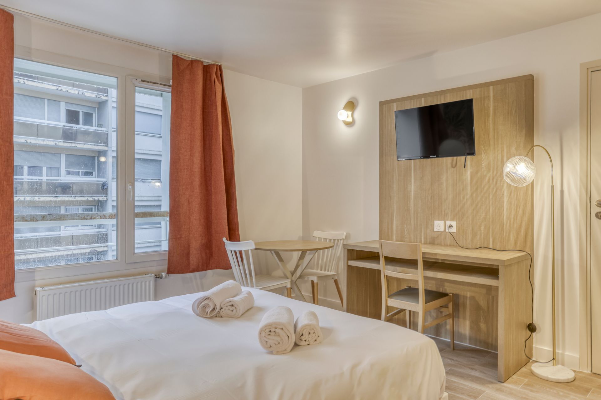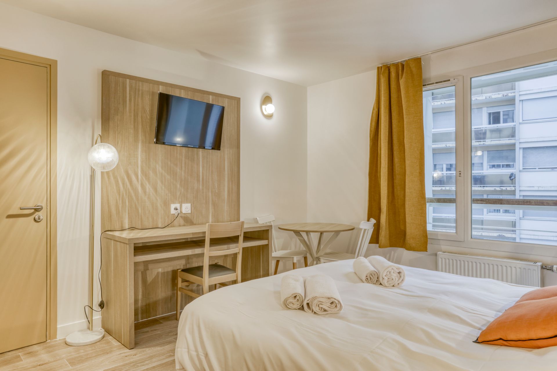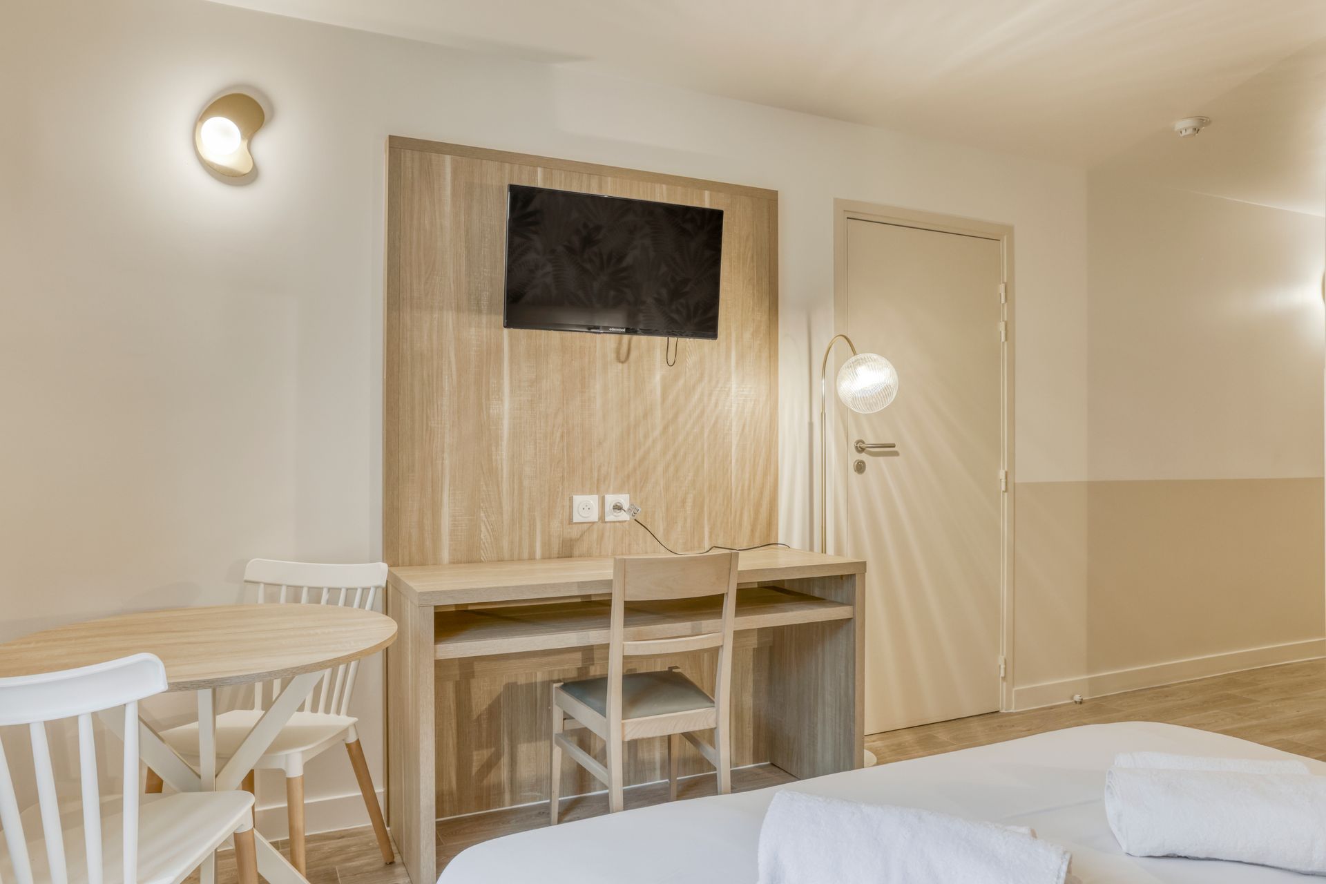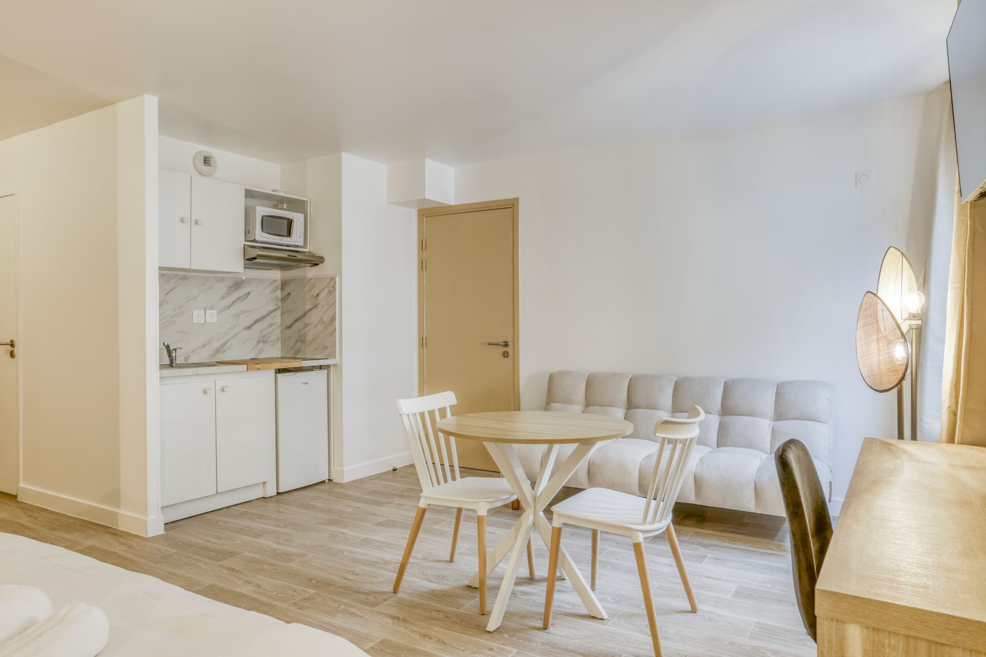 Nos 20 studios meublés sont répartis en 5 thèmes uniques, allant de 25 à 40 m², tous équipés pour vos séjours courts ou longs.